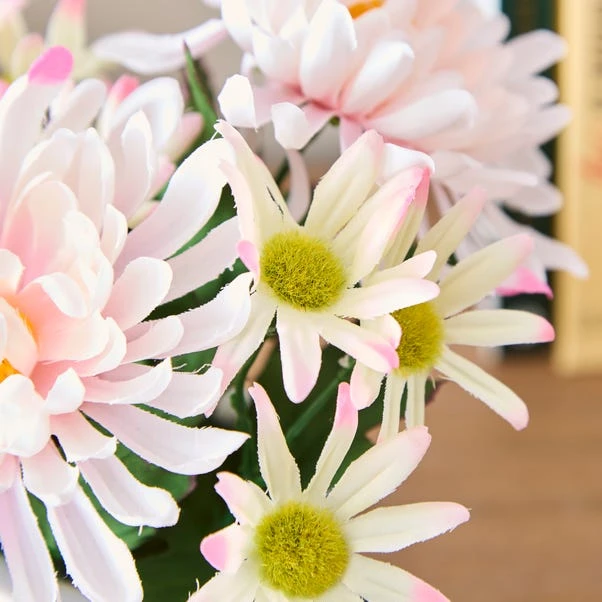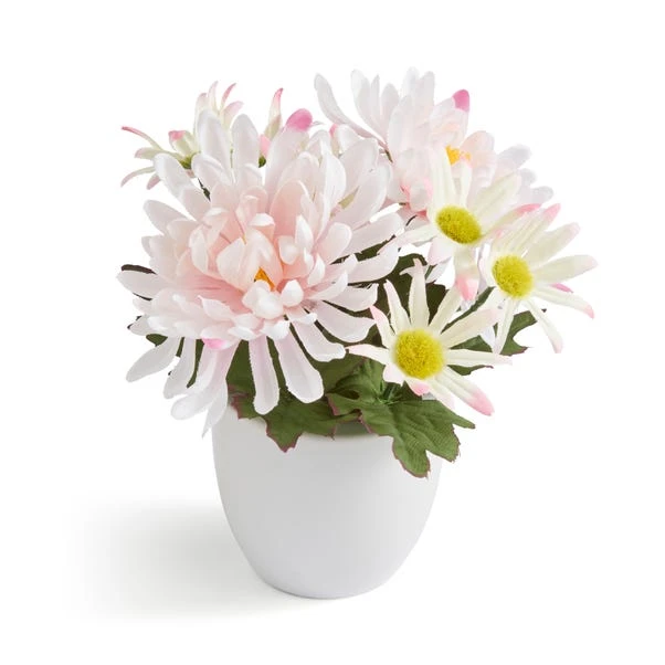 With a choice of pink or pastel purple blooms, this artificial floral arrangement is ready to display in its chic white ceramic plant pot. Perfect for a shelf or desk, this floral arrangement will bring life and colour wherever it’s placed, and needs no watering or care, so it’s ideal for busy households or low light spots.