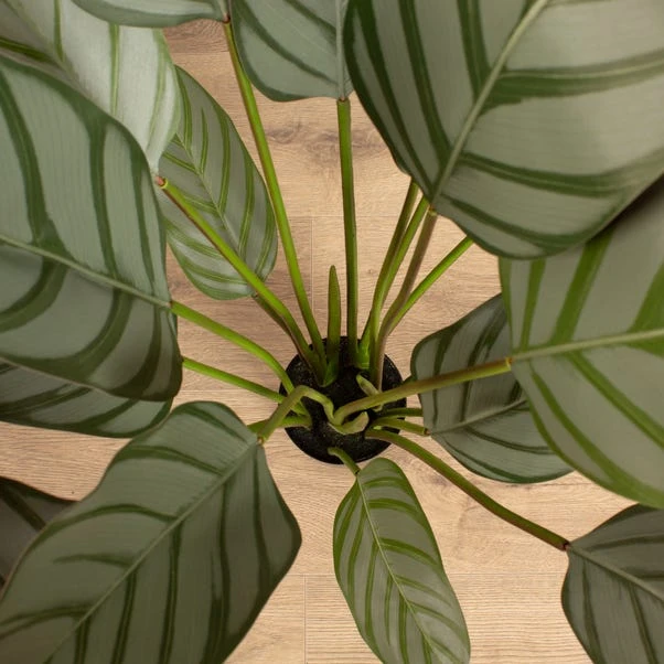 Add a pop of colour to your home with the statement Prayer Plant, which is displayed in a simple black plastic pot. Boasting an artificial composition, this piece requires no maintenance or upkeep – can you believe it?! Pair with a planter of your choice to complete the look.