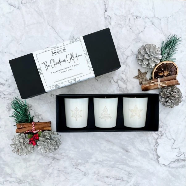 The perfect way to sample several scents, this gorgeous gift set contains three votive candles with engraved glass jars, emitting a warm glow through the design. The featured scents are all evocative of a cosy Christmas and will emanate through your home beautifully. The ideal gift for a loved one, or even as a treat for yourself this season.