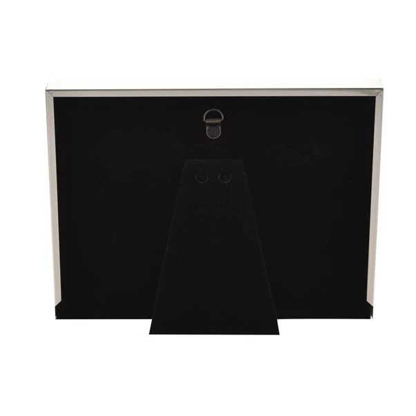 A silver plated photo frame from BAMBINO BY JULIANA®. This exquisite frame is an optimal way to beautifully present the photograph of new family arrivals. It features real silver plated metal, crisp white mount and landscape aperture. The freestanding box frame is completed by its crystal finished pram, teddy bear and rocking horse embellishments. The frame is packaged in a closed foiled branded box.
