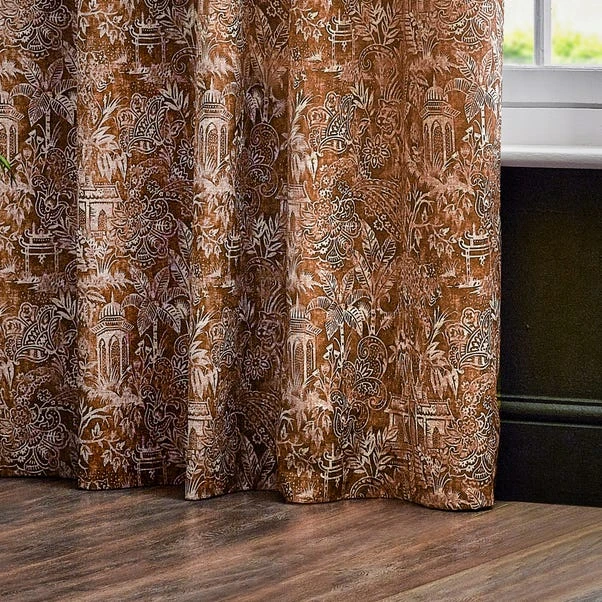 The Bengal Amber curtains feature a striking jungle-themed design, showcasing majestic Bengal tigers in a chenille fabric. Perfect for adding a bold statement to any room, these curtain panels are available in modern colour options and are designed with room-darkening qualities. The eyelet header ensures a neat drape and effortless hanging, while the durable polyester fabric promises a soft touch that’s easy to maintain.