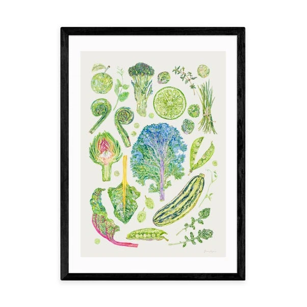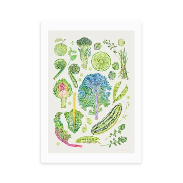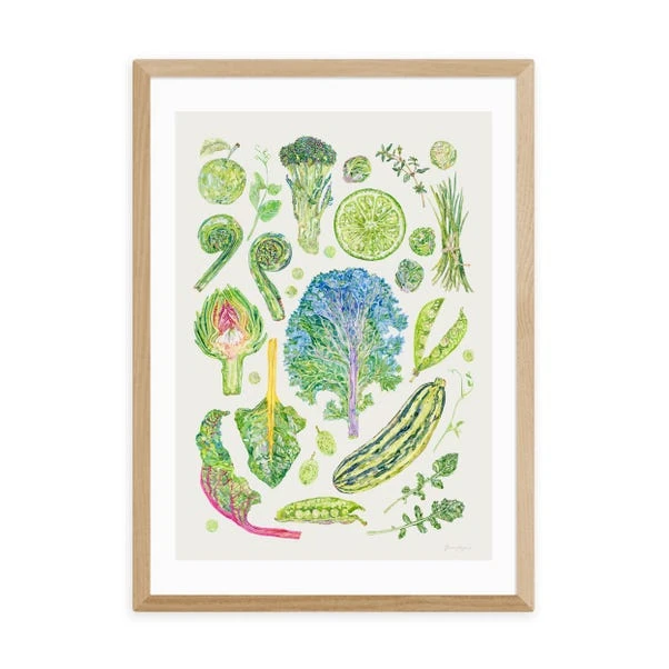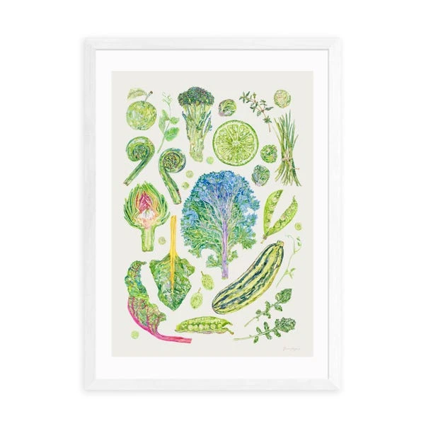 Perfect for a kitchen décor refresh, this print features vibrant green fruit and vegetables.