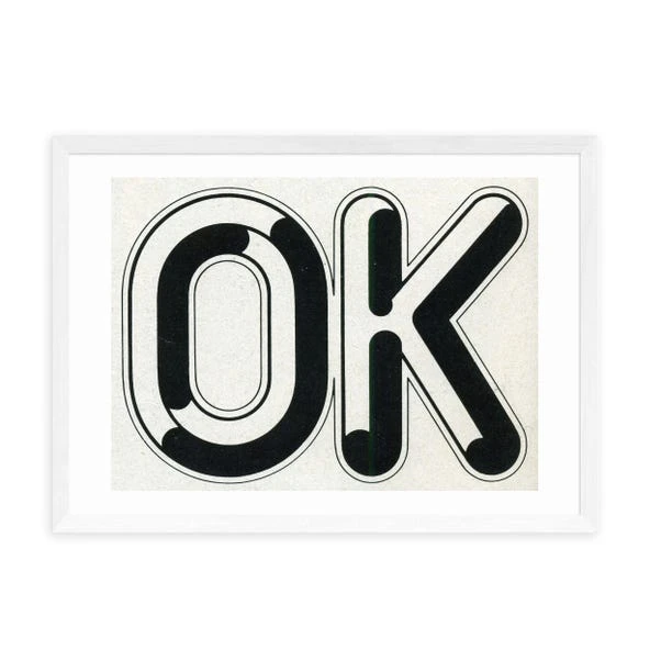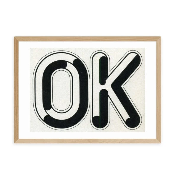 Bring bold contrast and typography style to your interior with this ‘OK’ print from Vintage by Hemingway. The stylised typeface is the perfect addition to modern or industrial design schemes.