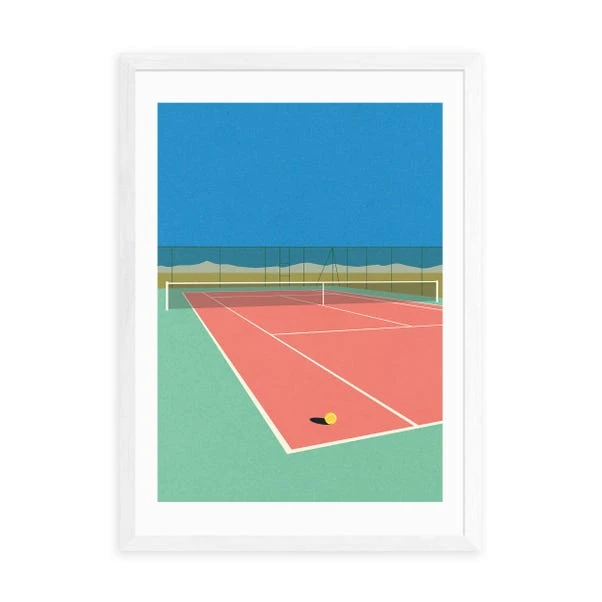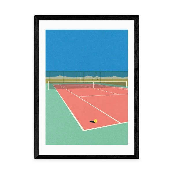 The Tennis Court In The Desert Print beautifully contrasts the stark desert landscape with the orderly geometry of a tennis court, creating a unique visual experience.
