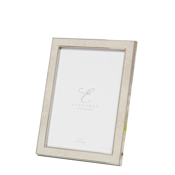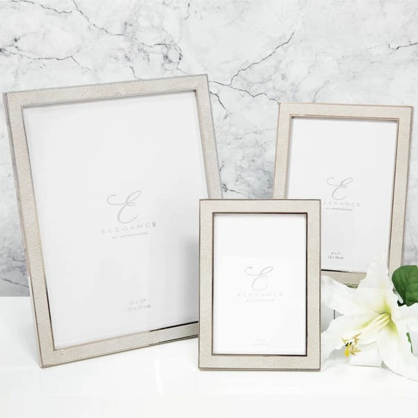 This Elegance Faux Shagreen Photo Frame features a sleek metal finish with a faux shagreen insert in a choice of colours, adding a touch of luxury and texture to any room. Designed for versatility, this frame can be displayed both landscape and portrait, which makes it perfectly adaptable for several types of photos. Packaged in a luxury gift box, it is an ideal gift for any special occasion. This photo frame is available in multiple sizes and colours.