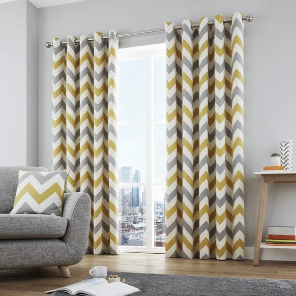 Decorated with a modern chevron design, these stunning eyelet curtains are ideal for bringing a contemporary edge to your décor. These curtains are crafted with a modern eyelet header for easy hanging and produce a beautiful undulating drape. Fashioned from 100% cotton for a gorgeous texture, these curtains are fully lined for added privacy and improved insulation. These curtains are available in a variety of sizes to suit your requirements and a coordinating cushion is available to purchase separately to complete the look.