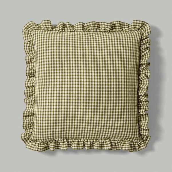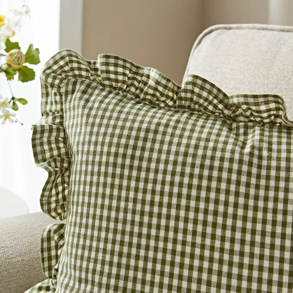 Add a playful twist to your décor with our Gingham Frill Cushion Cover. The on-trend gingham design, coupled with a charming frill edge finish, offers a touch of cottagecore sophistication. Made of 100% cotton and machine washable, this cover promises comfort, style, and practicality.