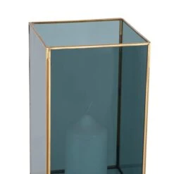 Brass & Smoked Glass Panelled Square Hurricane Candle Holder