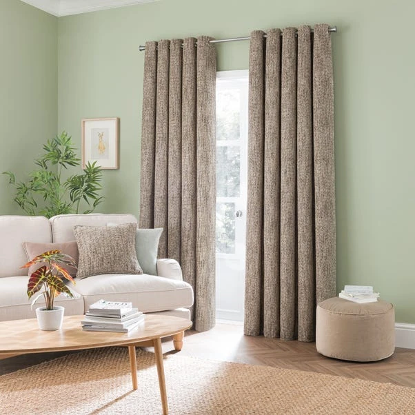 Style your windows with our gorgeous Mirabelle curtains. Crafted from a heavyweight, sumptuously soft, woven chenille quality, the surface is alive with a myriad of colours creating a perfectly balanced tonal effect which will effortlessly complement your interior home style. Made from irresistibly soft 100% recycled polyester, it is fully lined to enhance the curtain’s durability and drape. The brushed steel eyelets allow for an easy and hassle-free installation, making it a convenient choice for transforming your living spaces.