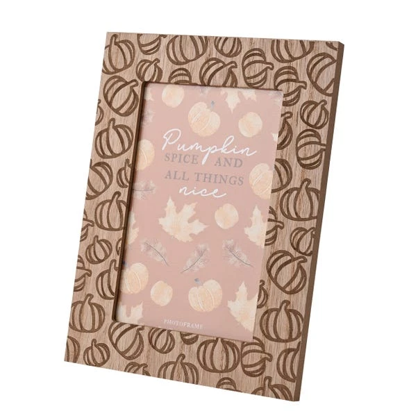 Autumn has arrived with this pumpkin patterned photo frame. Display your favourite photo with style. The frame is freestanding and will stand in a portrait orientation. Perfect for shelves or bookcases, this will bring a sprinkle of autumn fun to any room.