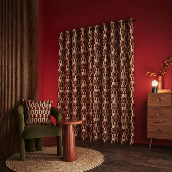 Decorated with a stylish geometric pattern for a modern look, our Regent curtains are crafted from a textured jacquard fabric and come complete with a dyed-to-match lining for a sophisticated finish. These curtains also feature a contemporary brushed steel eyelet header allowing for effortless movement across your curtain pole and easy installation. These curtains are available in a range of sizes to suit your needs, with a matching cushion available separately.