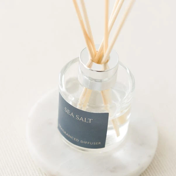 Bring the invigorating scent of the coast into your home with this Sea Salt reed diffuser. Bright citrus notes blend with a refreshing oceanic heart, complemented by cedarleaf, rosemary, and vetiver for a beautifully layered fragrance. Housed in a sleek clear glass vessel, it seamlessly suits any décor style while adding an uplifting scent to your space. Complete with natural reeds, this diffuser offers up to 3 weeks of fragrance for the 30ml size or up to 9 weeks for the 90ml. Perfect for enhancing living areas, bathrooms, or bedrooms with a refreshing aroma, it’s a simple way to add a coastal vibe to your home.