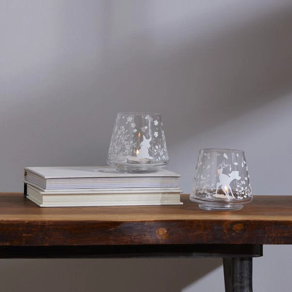 Add a touch of Disney magic to your space with the Set of 2 Disney Bambi Glass Candle Holders. Crafted from thick, clear glass, each holder showcases a delightful white silhouette of Bambi and Thumper amongst the trees.