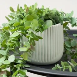 Artificial Trailing Sedum Burros Tail In Speckled Ceramic Plant Pot