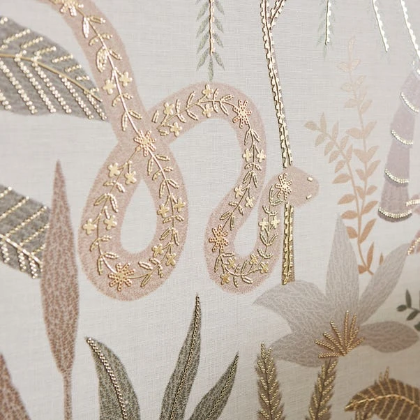 Large in size, this showstopping canvas depicts tropical botanicals and snakes. Featuring embroidered detail, this piece is encased in a champagne frame and is sure to fill any guest with delight!