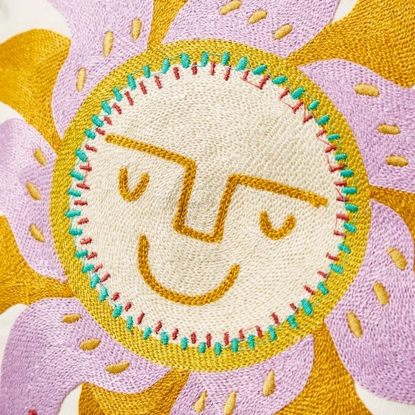 - Embroidered sun design